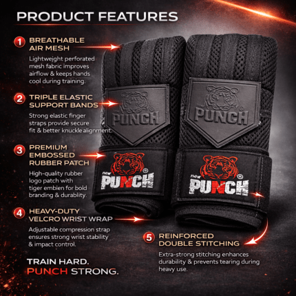 Upgrade your training with the New Punch Pro Quick Hand Wraps, designed for fighters who demand comfort, protection, and durability.
